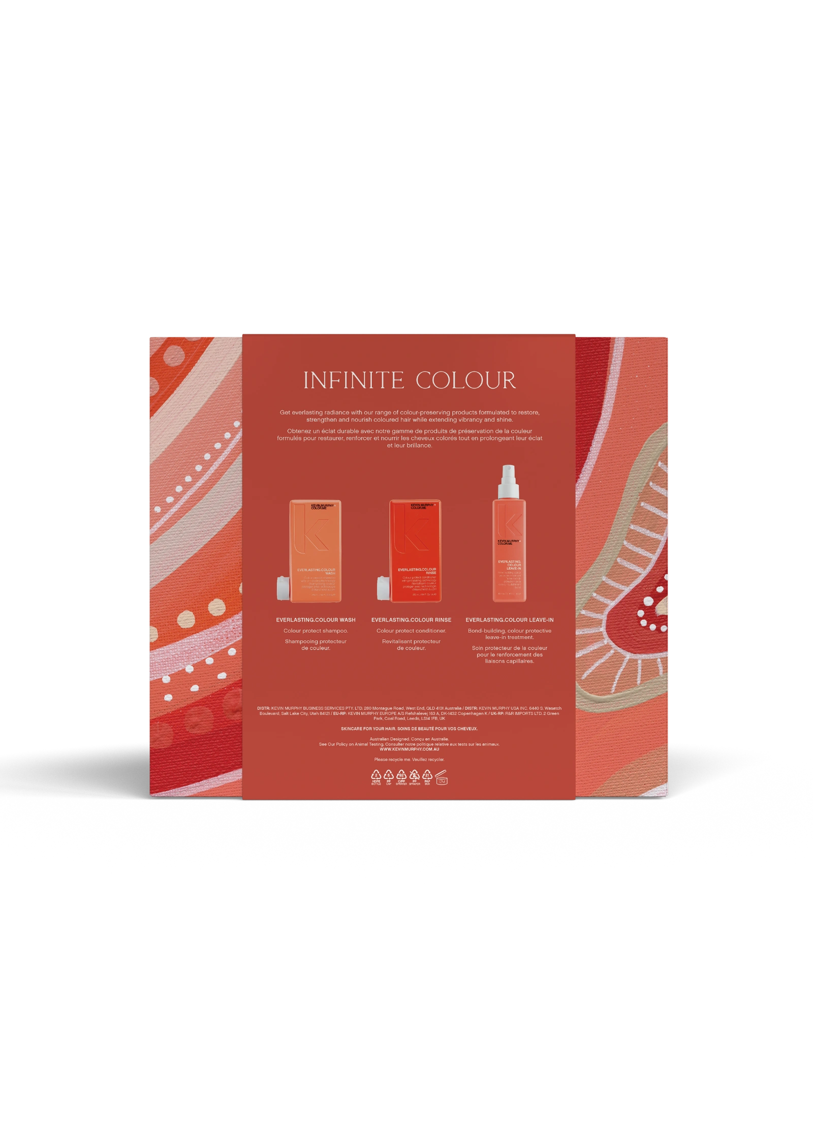 Pasiekite ilgalaikį spindesį su spalvą išsaugančių produktų asortimentu, sukurtu atkurti, stiprinti ir maitinti dažytus plaukus, tuo pačiu išlaikant jų gyvybingumą ir blizgesį. Rinkinį sudaro: